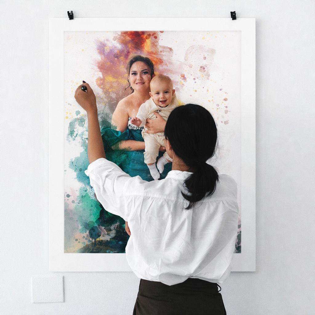 Fiecare lucrare este creată cu atenție la detalii și emoție, pornind de la fotografii reale, apoi transpusă digital și imprimată pe suport fizic de calitate. Scopul nostru este să transformam amintirile speciale în opere de artă unice, gata să fie expuse sau oferite cadou.
